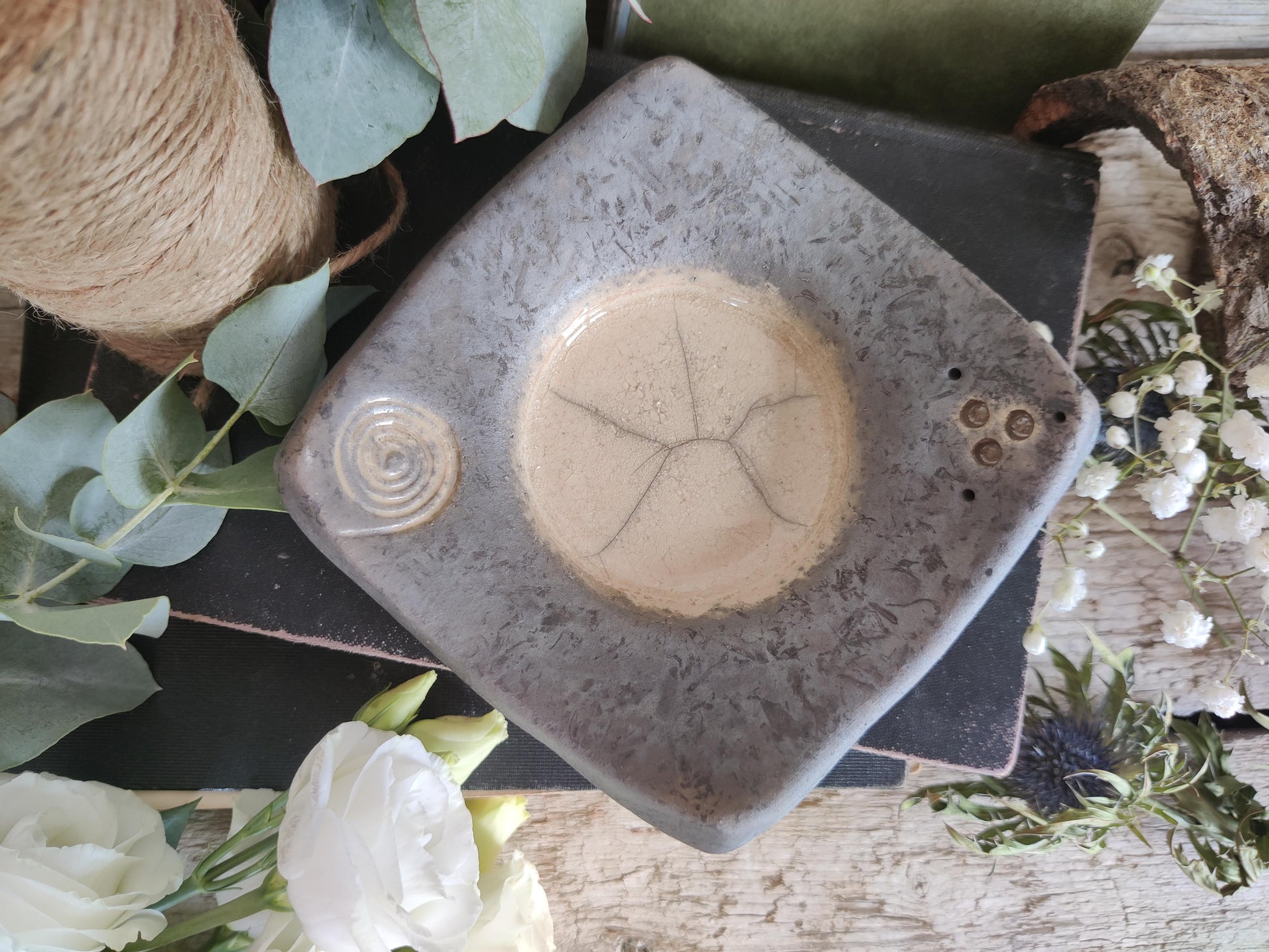 Keramikständer für Heilkräuter-Kerzen – Handgefertigt im Allgäu (eckig)