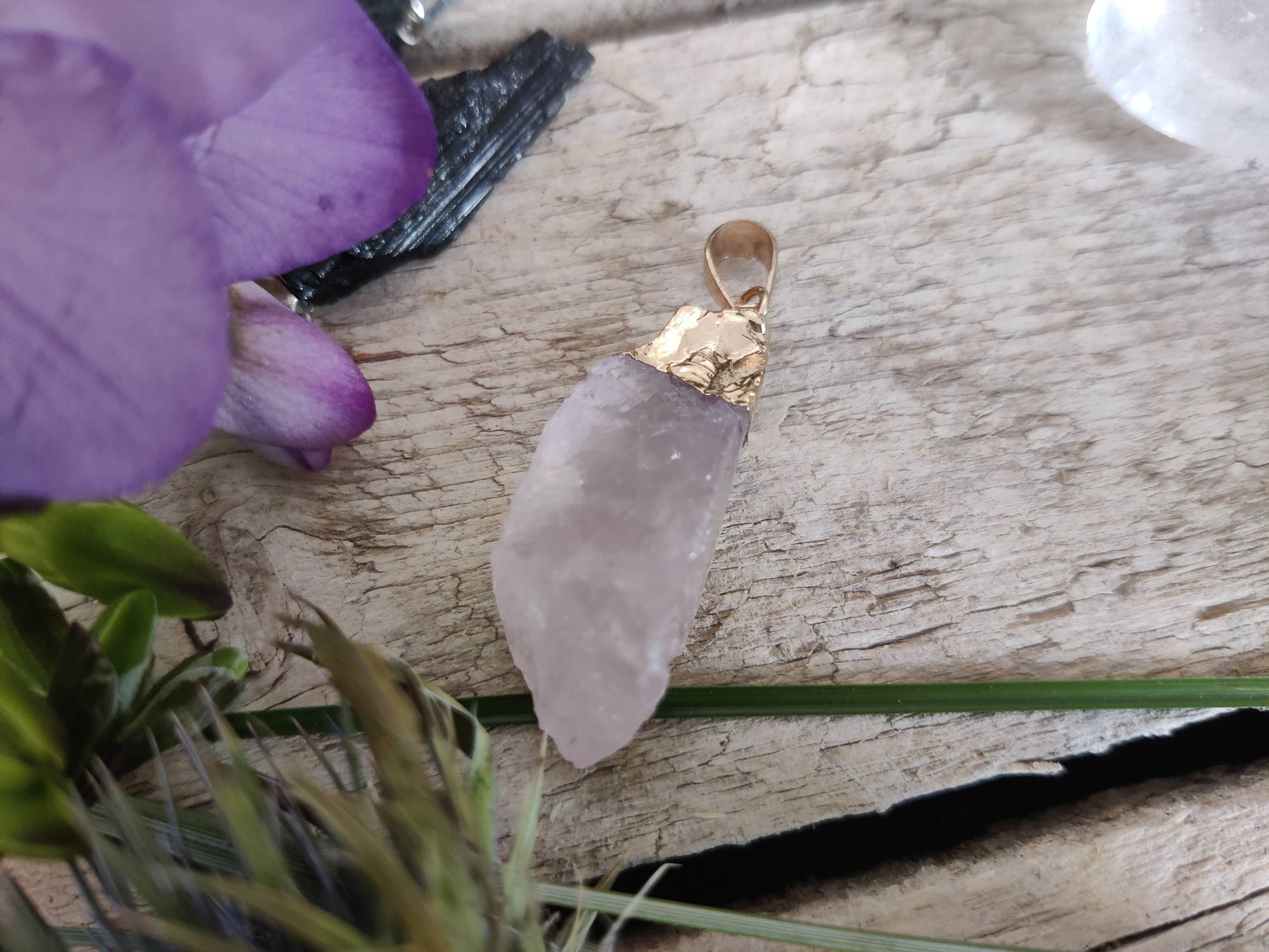 Anhänger aus Rosenquarz mit goldfarbiger Halterung - Zart, zeitlos und einfach schön